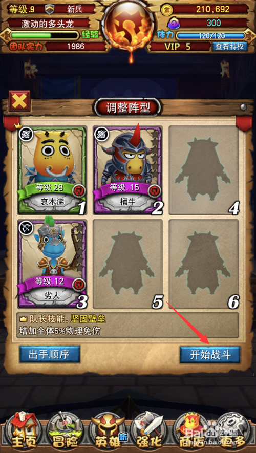 4.按照如下阵型和出手挨次,点击起头战斗进入副本。