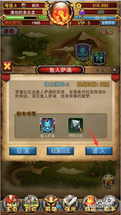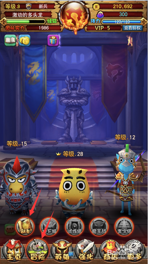 点击本家儿菜单冒险,再点击子菜单副本按钮。