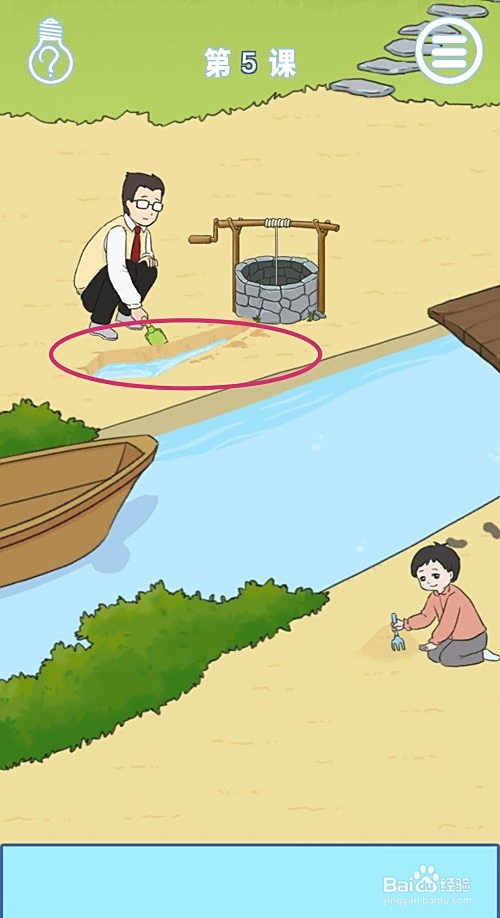 点击藏在水底的学生,教员就会跳入河中,当作功抓到学生,游戏就顺遂过关了。