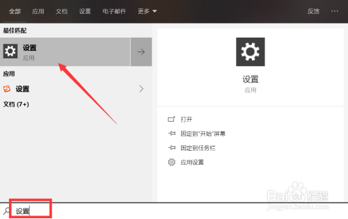 接着我们在弹出的搜刮框中输入“设置”,并点击进入系统的设置界面。