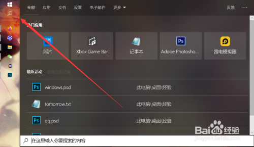 起首我们在使命栏中找到搜刮按钮,并点击搜刮按钮,会弹出系统的搜刮界面。