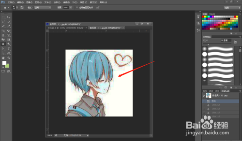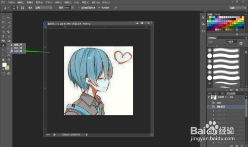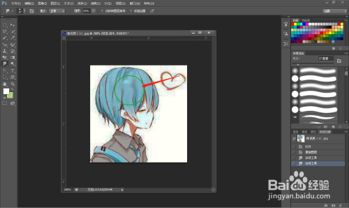第六步:操纵涂抹东西对原图片局部起头涂抹;看图