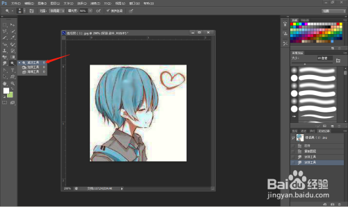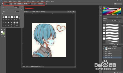 第六步:操纵减淡东西对原图片局部起头涂抹;看图