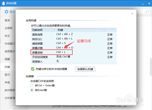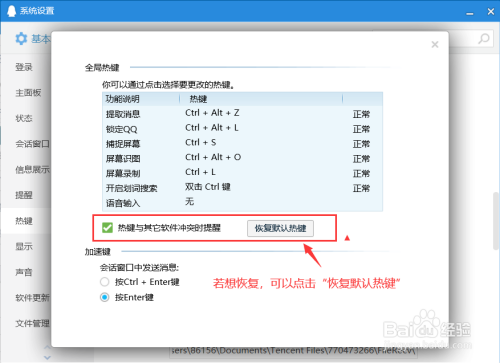 当然,若是您想恢复,直接点击“恢复默认热键”