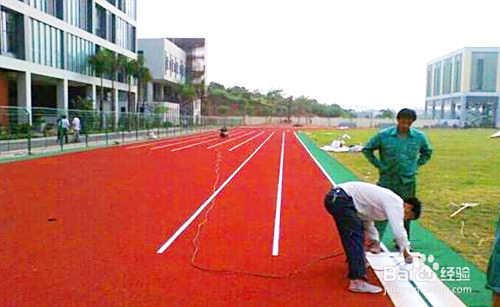 END为合理放置天天的铺装工作量,必需先在根本上按照设定方案测量画好分界线,将整个田径场分当作条块,然后按条按块进行铺装。为包管排水通顺和接缝少等要求,采用先内后外圈的施工程序。