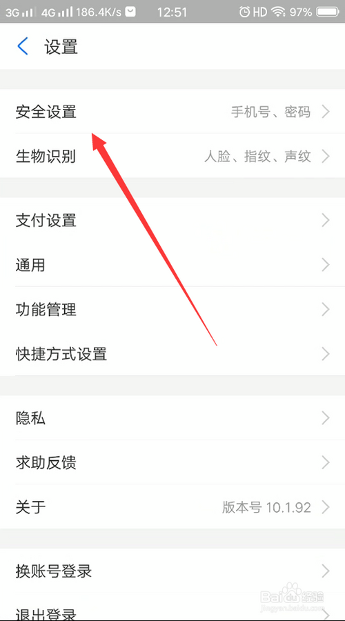 接着,进入了支付宝的设置界面今后,我们在最上面的选项卡中找到“平安设置”选项,并点击进入。