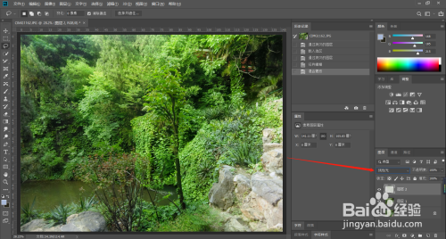 第五步,点击右侧图层里的正常改当作线性光,如图所示