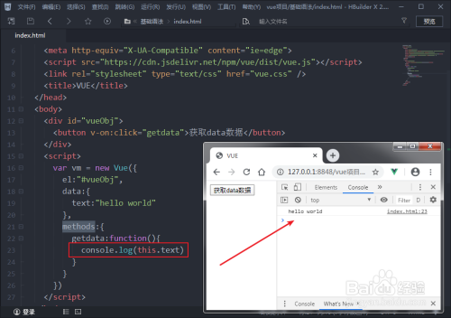 第一种环境,在methods对象中去获取data的数据: