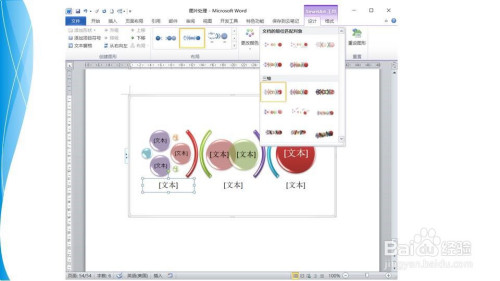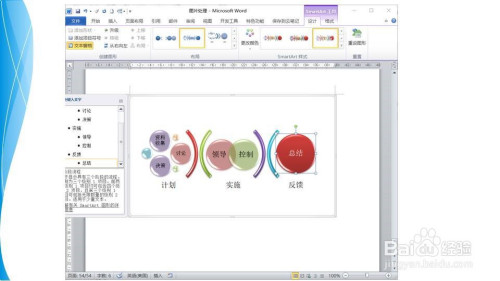 在编纂区呈现一个分阶段流程图,需要对其进行一些处置,以更美不雅。在SmartArt 东西栏中选择设计院选项卡——样式组,选择本身的颜色