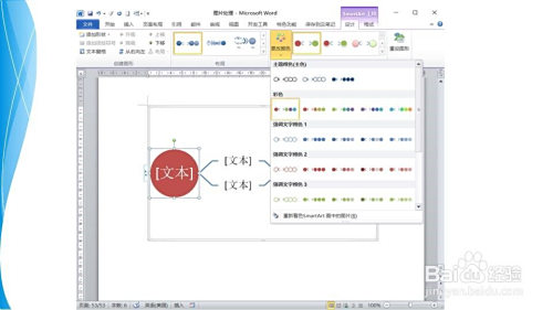 在编纂区呈现一个子步调流程图,需要对其进行一些处置,以更美不雅。在SmartArt 东西栏中选择设计院选项卡——样式组,选择本身的颜色
