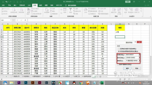 3.然后打开高级筛选,将需要的位置都框选住,点击确定。