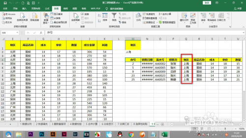 END1.打开Excel表格要筛选地域是上海的数据。