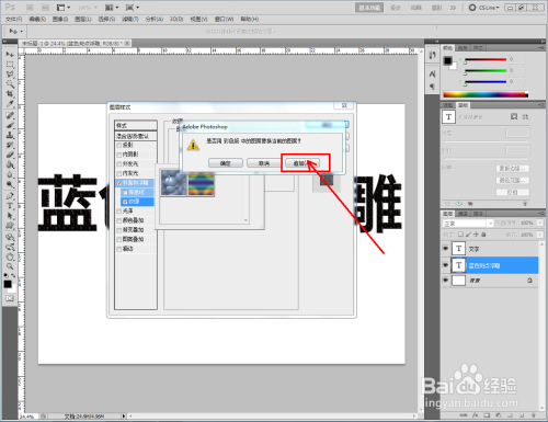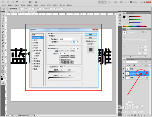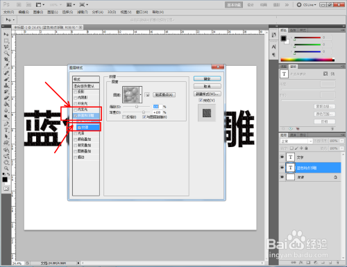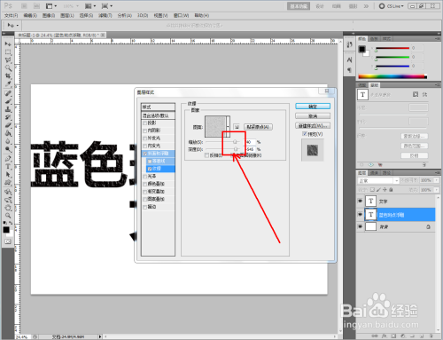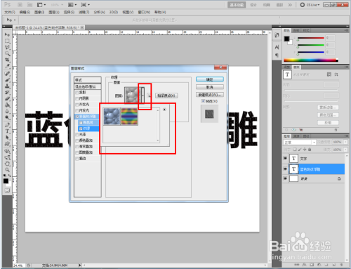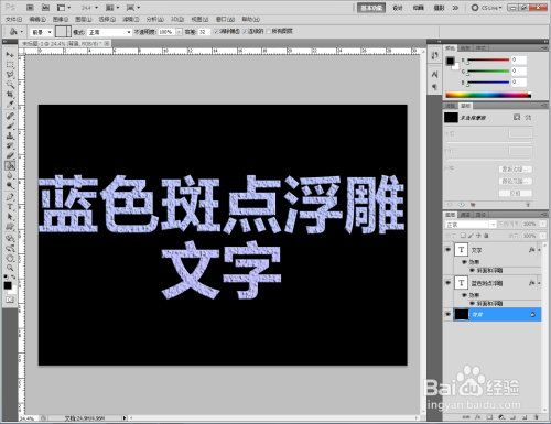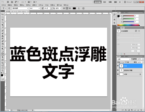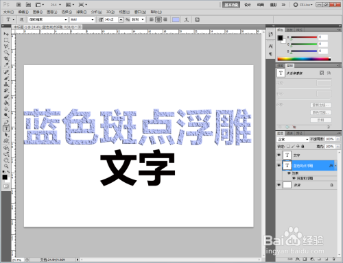 点击【文字东西】按图示设置好文字各参数后,完当作“蓝色黑点浮雕”和“文字”文字建造;