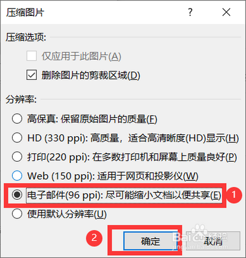 4. 点击“压缩图片”,接着点击“电子邮件(96 ppi)”