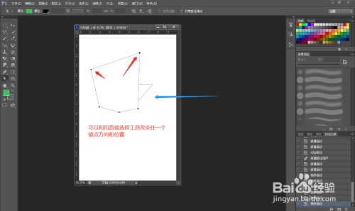 第五步: 切换到“直接选择东西”,可以操纵直接选择东西更改任一个路径图形的锚点偏向和位置;如图