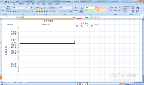 双击C与D列的中线调整C列序号的列宽——在D列那边按住鼠标拖动拉宽D列的列宽,便利输入文字。