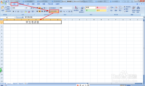 在新建的空白EXCEL文档中选择A1:H1单位格——点击起头——归并后居中——输入题目:甲方考勤表