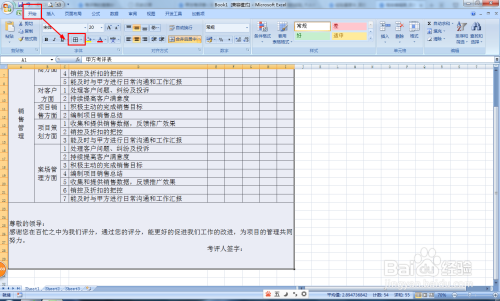最后,在考评表的后面设置签字内容——选择所有内容——点击起头——设置所有边框。
