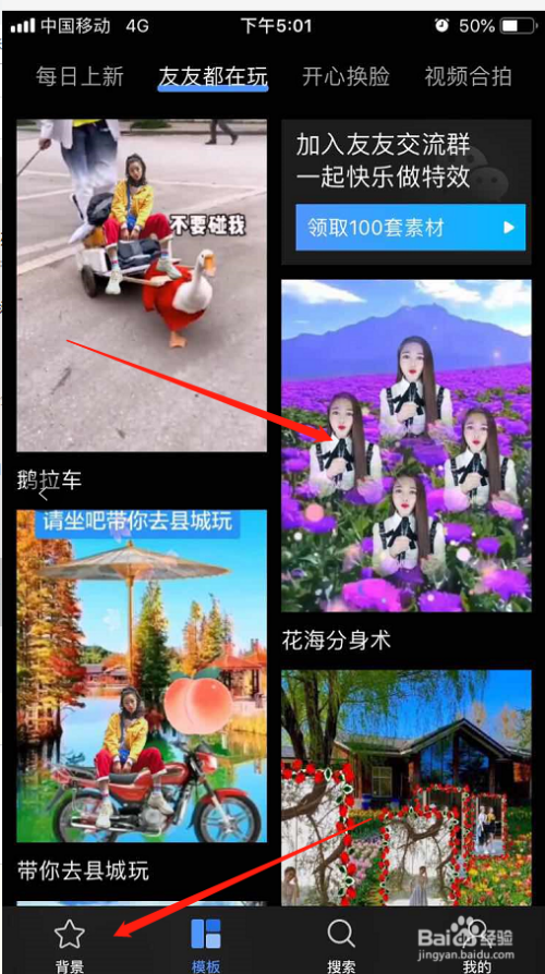 然后进入APP,选择一个本身喜好的模板或者布景
