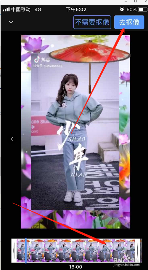 选择好之后调整所需要抠图的时候段,然后点击右上角的去抠像