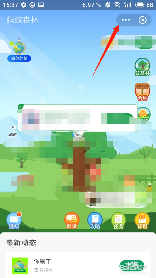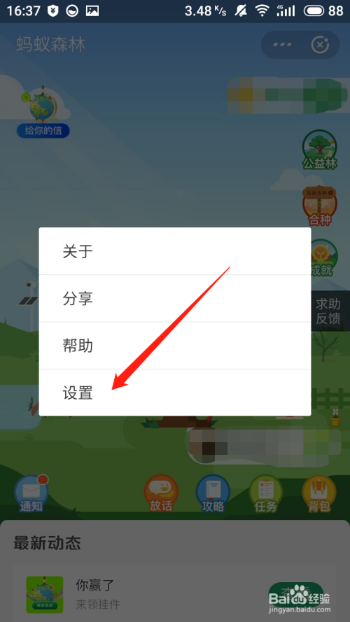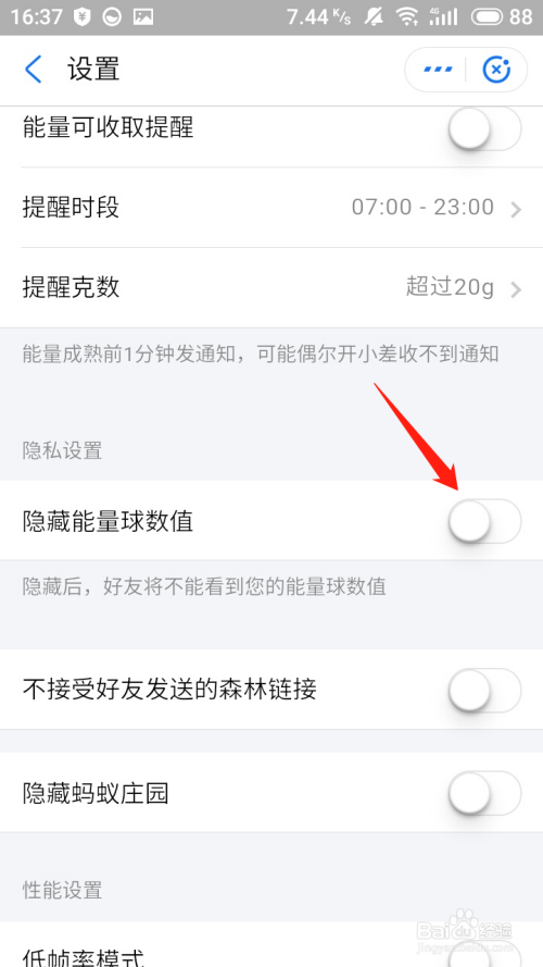 2. 点【蚂蚁丛林】- 右上方【---】-【设置】-【埋没能量球数值】。