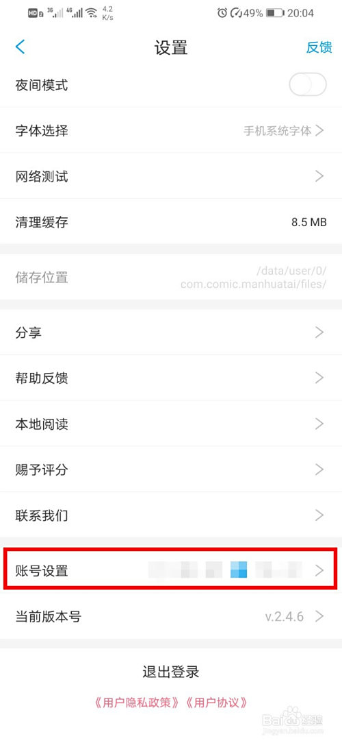 打开后,点击“账号设置”。