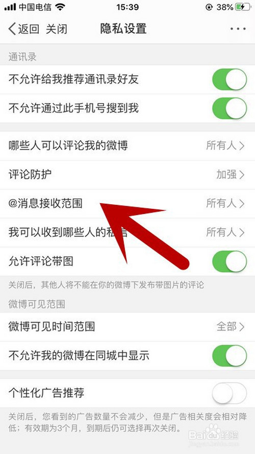 进入后,点击隐私设置。