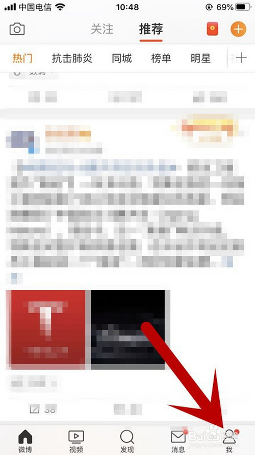 2、在微博内部界面,点击右下角我的选项。