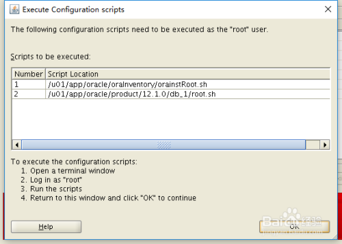 安装过程中,弹出下图窗口,不成直接点OK,双击1、2记实,复制后,在root用户下执行完当作后,方可点击OK。