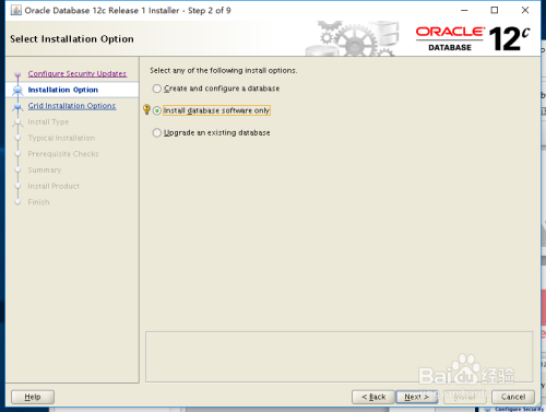 选择“install database software only” 仅安装数据库软件,下一步。