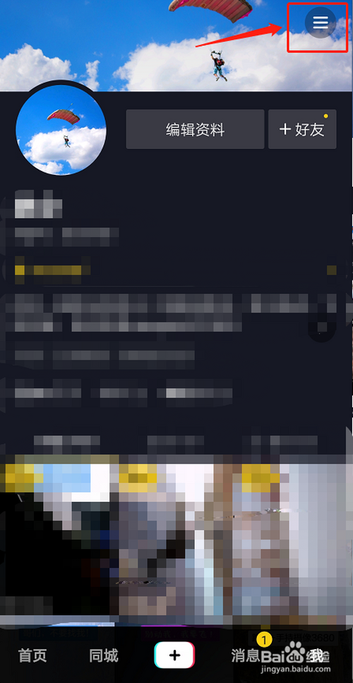 点击小我本家儿页右上方的“三道杠”图标,呈现良多菜单栏。