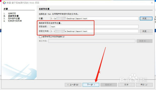 选择项目地点目次,可点窜新项目标名称及目次,点击下一步