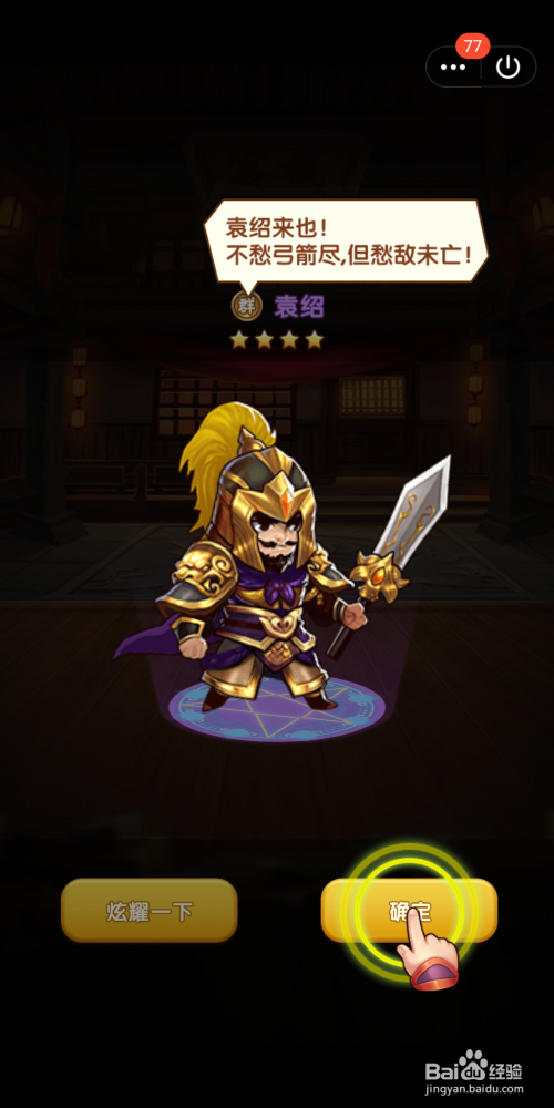 获取将士今后,可以查看他的星级,点击确定