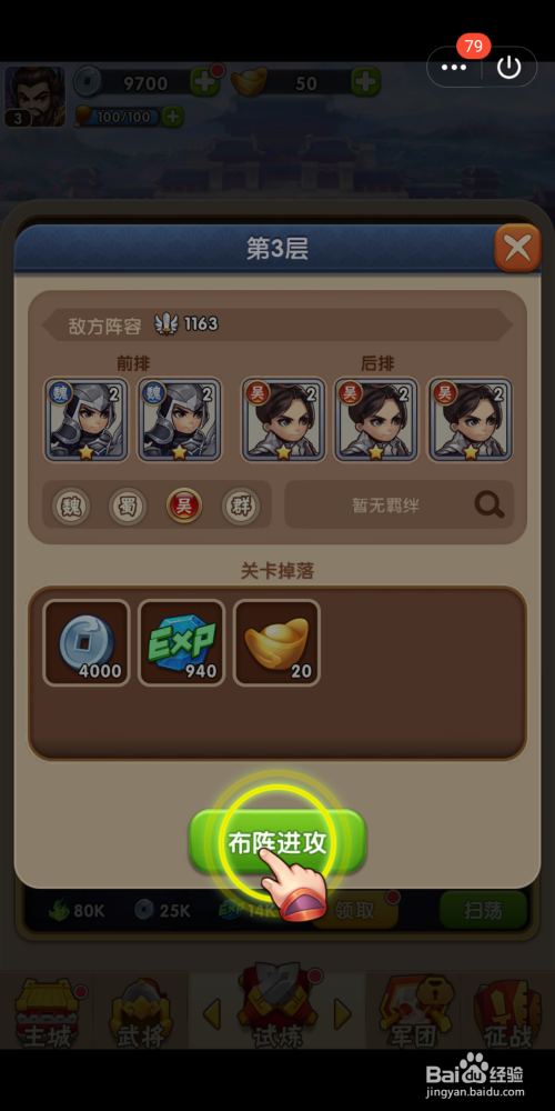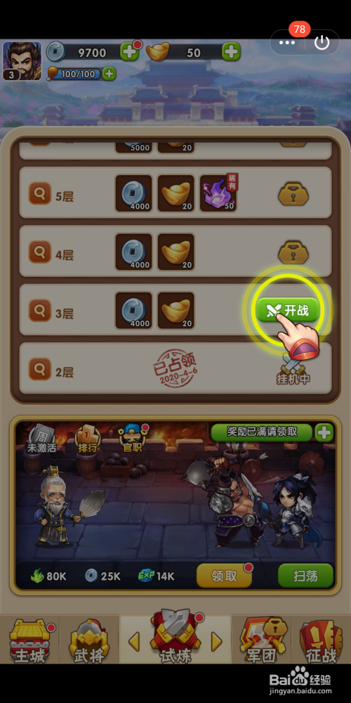 点击【试炼】,起头试炼将士