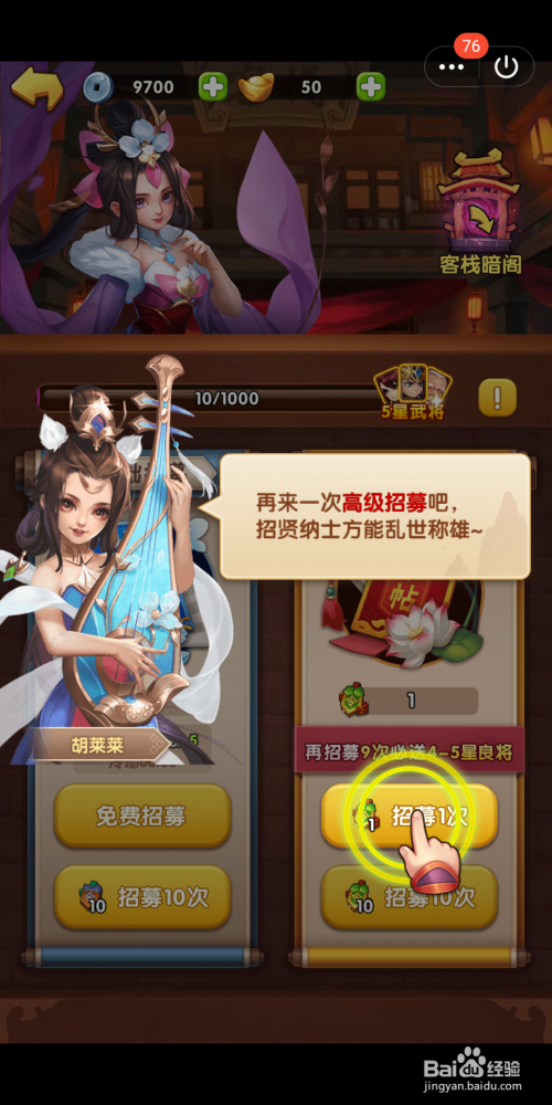 点击高级招募,招募将士