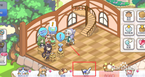 第三:进入【公会之家】点击右上角的【MENU】标记按钮点击【赠礼】给脚色。