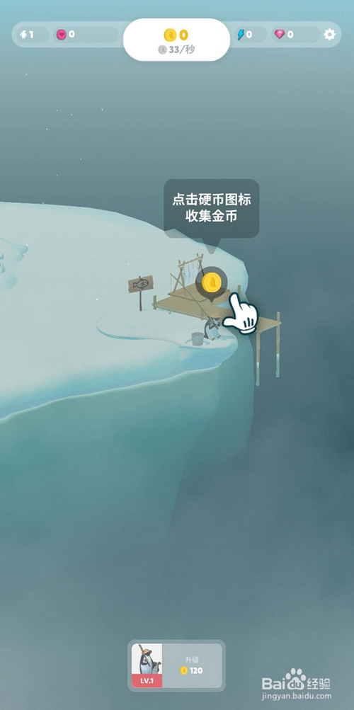 按照游戏指引使命,点击收集企鹅岛游戏金币选项。