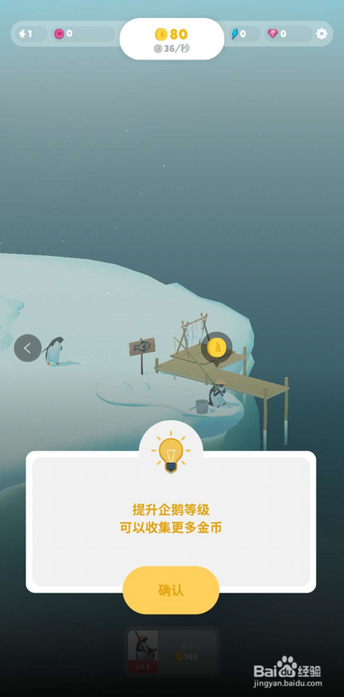 点击确定,晋升企鹅的品级,经由过程晋升企鹅的品级,可以获得更多的游戏奖励。