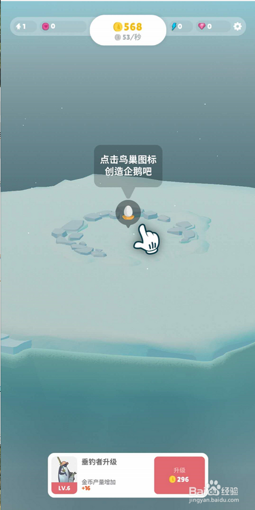 5、点击鸟巢的图标选项,继续缔造企鹅,增添企鹅岛的企鹅数目。