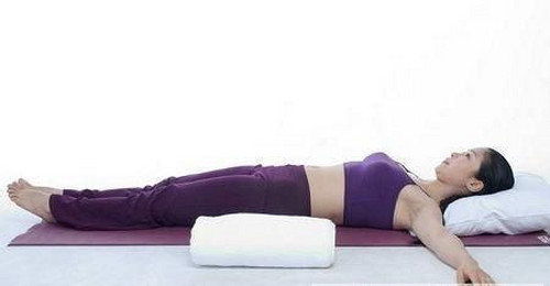 第一步全身放松平躺在床上,必然要垫个枕头;