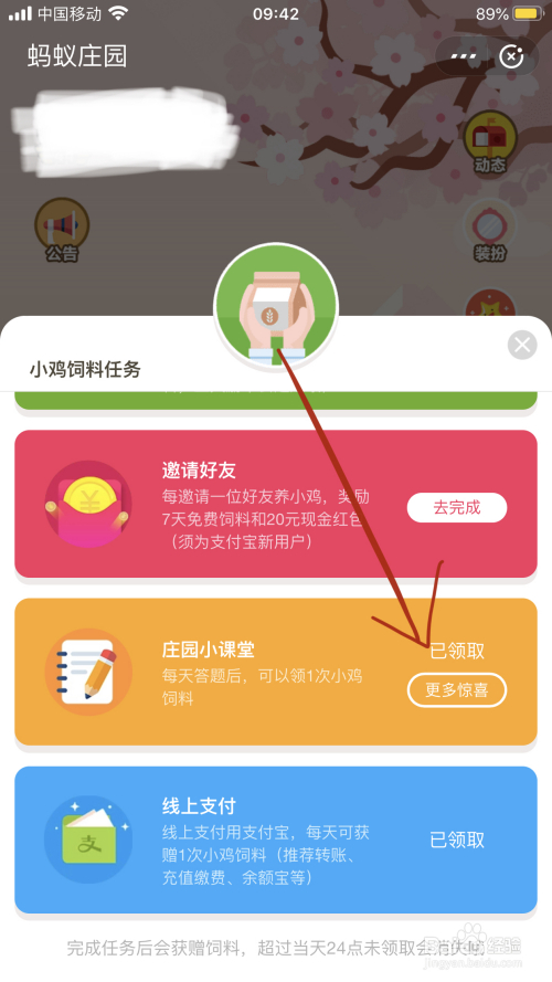 3、点击小鸡饲料使命可以领取更多的饲料。