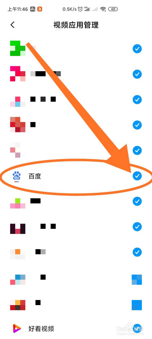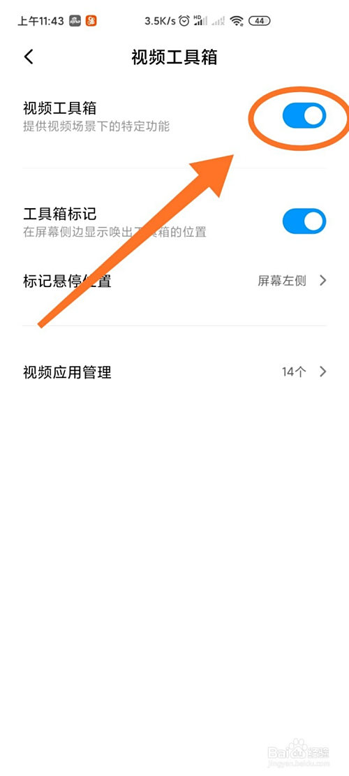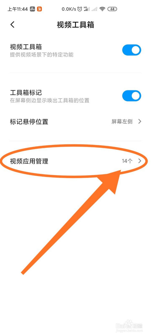 点击此处进入视频应用办理,设置需要开启视频东西箱的应用。