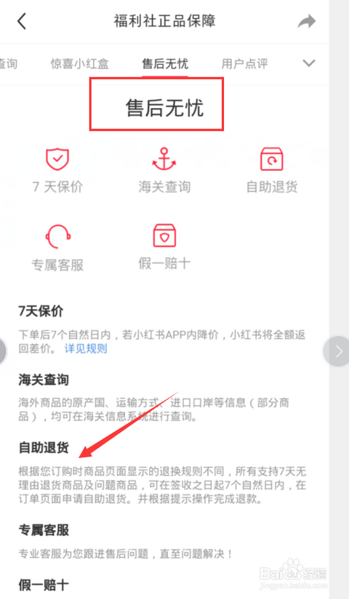 第四:小红书的售后办事撑持【七天退货】假一赔十。