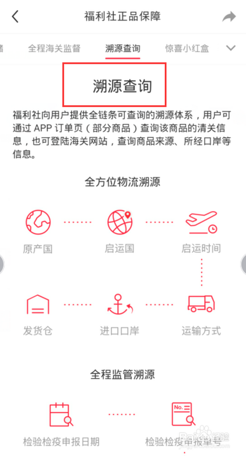 第五:小红书供给【溯源查询】功能查询商品清关信息。