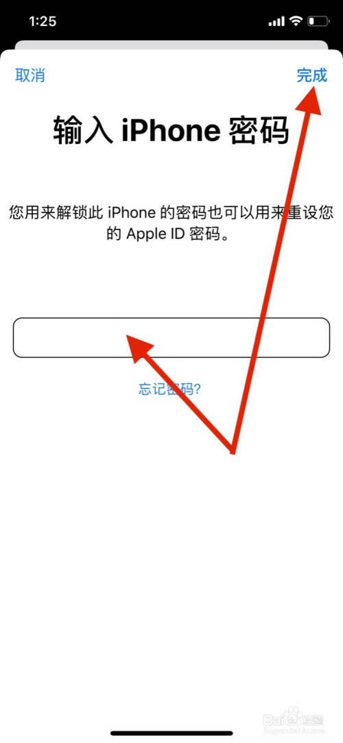 6、输入手机解锁暗码点击完当作。