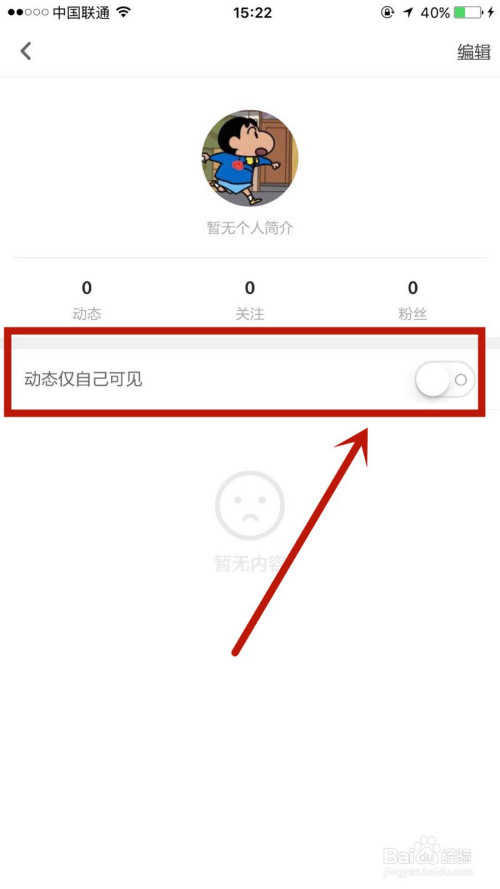 3.找到动态仅本身可见后的按钮点击打开,即可。
