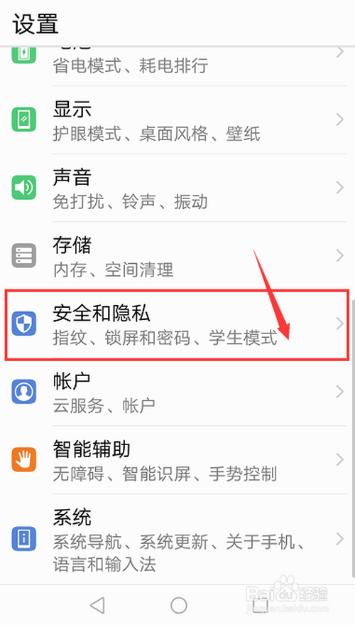 点击打开【平安和隐私】。