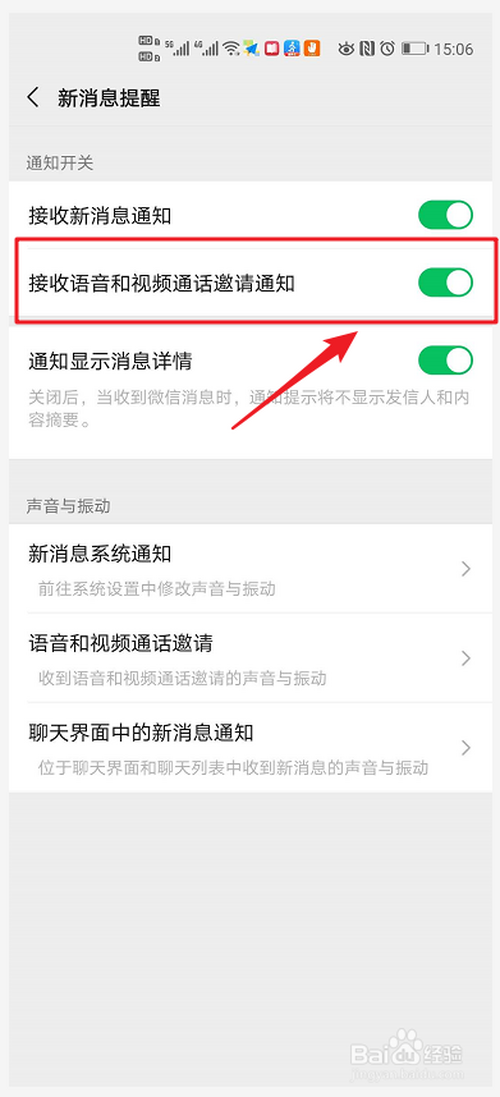 点击开启/封闭【领受语音和视频通话邀请通知】,即可开启或封闭领受语音和视频通话邀请通知的功能,可按照需要进行设置。