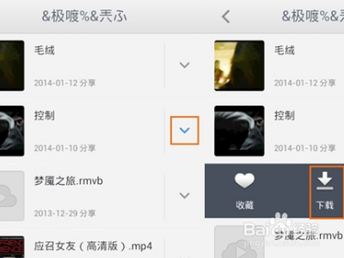 在扫描四周的人中,选择喜好的视频,点击“∨”图标,展出菜单,用户可以对视频进行下载。