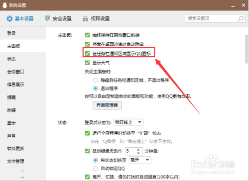 勾选“在使命栏通知区域显示QQ图标”即可。